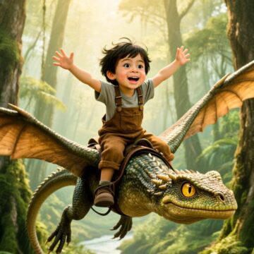 Hyperrealistic Fantasy Scene of a Joyful Boy