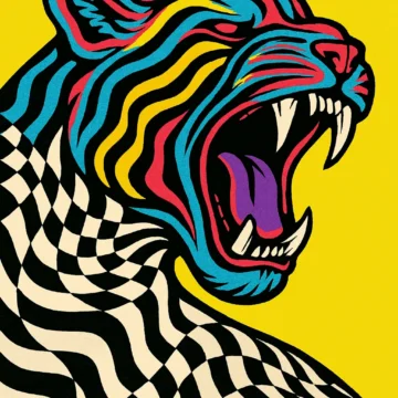 Psychedelic pop art illustration of a roaring animal