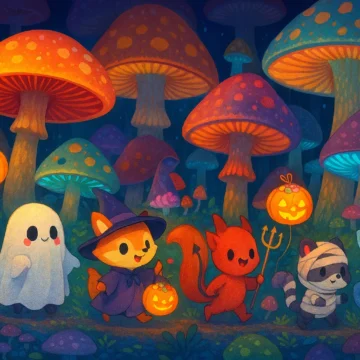 Create an image of a trick-or-treat parade in
