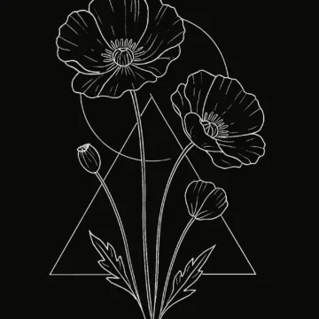 minimalist floral line art illustration of poppy flowers,