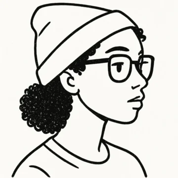Simple black and white image, 3/4 profile of